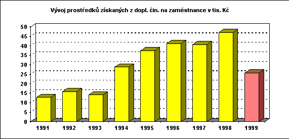 Vývoj prostředků získaných z dopl. činnosti na zaměstnance v letech 1991 – 1999 v tis. Kč1991 |
