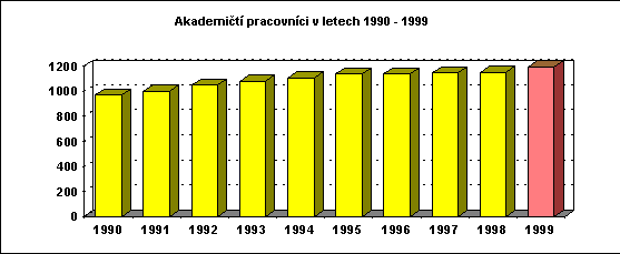 Tab. 10 – Zaměstnanci MU v letech 1990 – 1999 ( akademičtí pracovníci )
